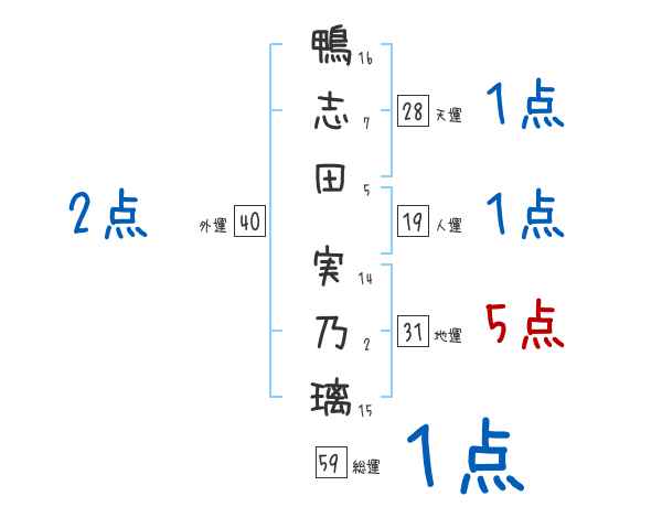天運![]() | 鴨志田実乃璃さんの天運は28画の1つ星!家庭環境に注意。スポーツで活躍できる能力があるかも。 家系が持つ宿命的な運勢を表します。祖先から受け継いだ苗字ですので自分の力が及びません。家柄を象徴します。 |