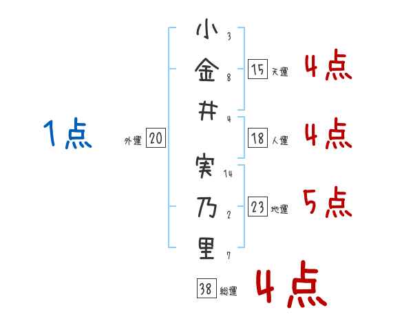 天運![]() | 小金井実乃里さんの天運は15画の4つ星!人徳があり出世する。順調に物事を進め円満な人生。 家系が持つ宿命的な運勢を表します。祖先から受け継いだ苗字ですので自分の力が及びません。家柄を象徴します。 |