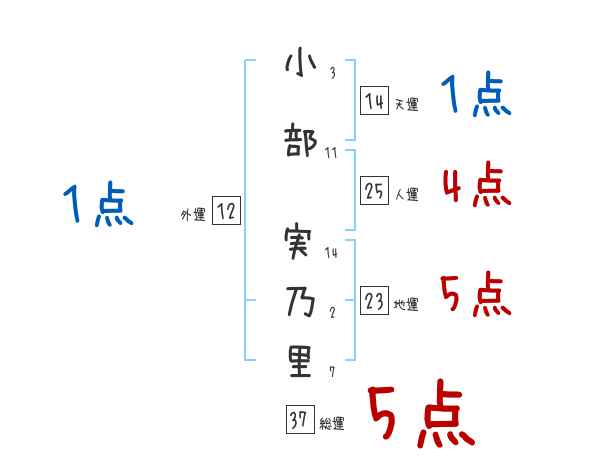 天運![]() | 小部実乃里さんの天運は14画の1つ星!人に対して優しいがストレスを溜め込みがち。人間関係のトラブルを避けるよう気をつけましょう。 家系が持つ宿命的な運勢を表します。祖先から受け継いだ苗字ですので自分の力が及びません。家柄を象徴します。 |