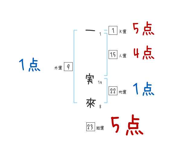 一実來さんの画数の鑑定結果