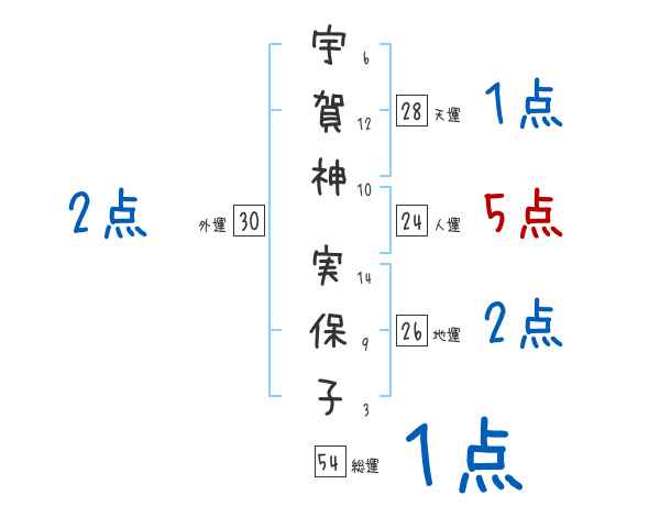 外運![]() | 宇賀神実保子さんの外運は30画の2つ星!浮き沈みの激しさに注意しましょう。 生活面を象徴する運勢です。外部から受ける影響力を表し、結婚運、家庭運や職場、環境への順応性を表します。 |