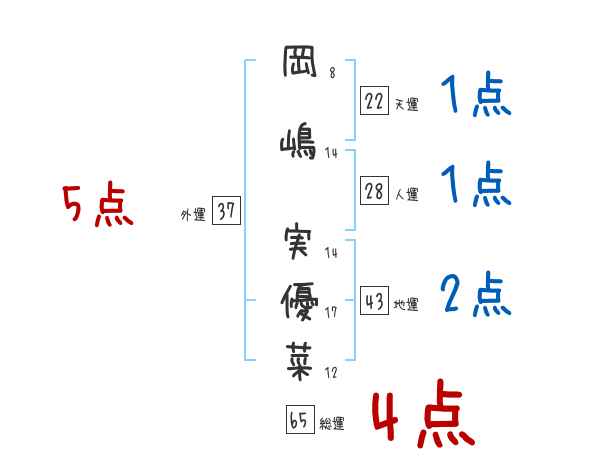 外運![]() | 岡嶋実優菜さんの外運は37画の5つ星!努力家で順応性に優れる。現実的な考え方ができ忠実に物事をこなす。 生活面を象徴する運勢です。外部から受ける影響力を表し、結婚運、家庭運や職場、環境への順応性を表します。 |