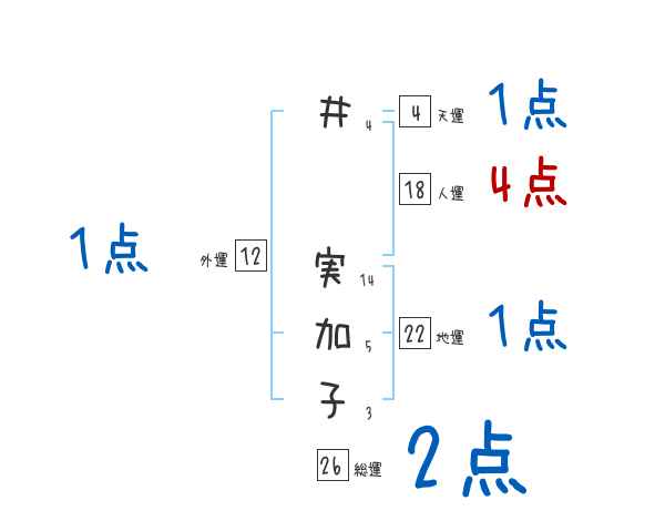 天運![]() | 井実加子さんの天運は4画の1つ星!感情が不安定で苦労するかも。周囲との協調を心掛けましょう。 家系が持つ宿命的な運勢を表します。祖先から受け継いだ苗字ですので自分の力が及びません。家柄を象徴します。 |