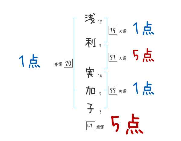 天運![]() | 浅利実加子さんの天運は19画の1つ星!優れた才能を持ちますが、協調性が足りないことも。周りの人と協力する事を意識しましょう。 家系が持つ宿命的な運勢を表します。祖先から受け継いだ苗字ですので自分の力が及びません。家柄を象徴します。 |