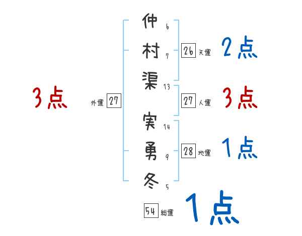 仲村渠実勇冬さんの画数の鑑定結果
