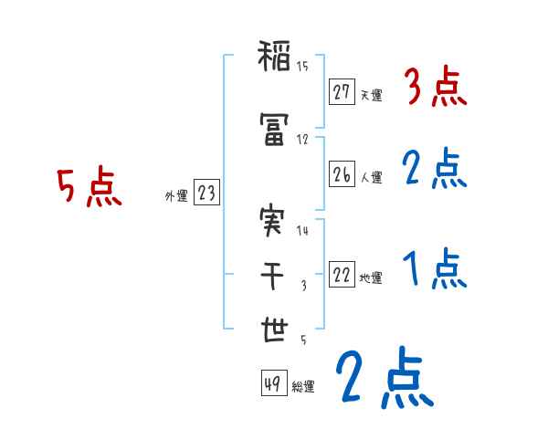 天運![]() | 稲冨実千世さんの天運は27画の3つ星!頭脳明晰だが強情で摩擦が多い傾向。孤立に注意。 家系が持つ宿命的な運勢を表します。祖先から受け継いだ苗字ですので自分の力が及びません。家柄を象徴します。 |