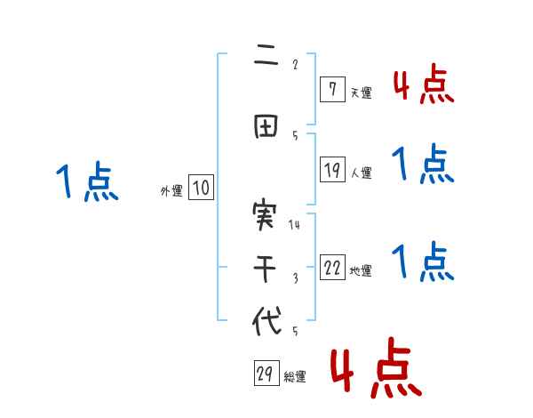 二田実千代さんの画数の鑑定結果