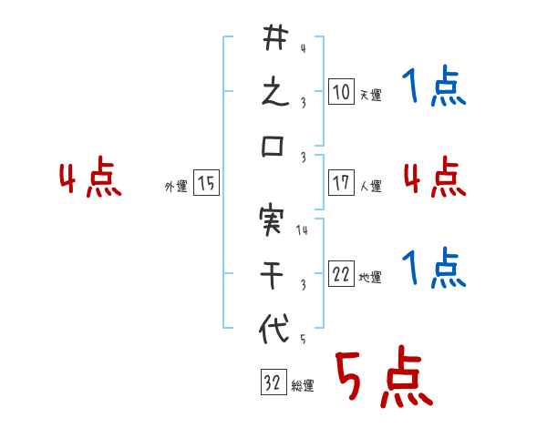 天運![]() | 井之口実千代さんの天運は10画の1つ星!不安を感じやすい傾向。ストレスを抱えないように注意しましょう。 家系が持つ宿命的な運勢を表します。祖先から受け継いだ苗字ですので自分の力が及びません。家柄を象徴します。 |