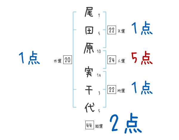 尾田原実千代さんの画数の鑑定結果