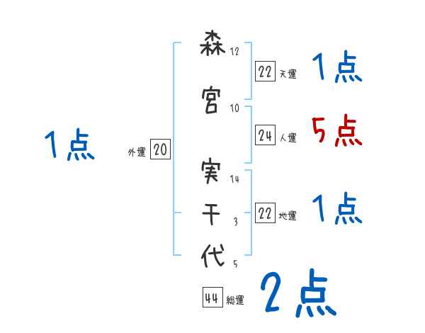 森宮実千代さんの画数の鑑定結果