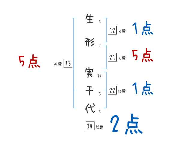 総運![]() | 生形実千代さんの総運は34画の2つ星!独創性に優れるが、自尊心が強く災難に注意しましょう。 あなたの人生を表す1番重要な運勢です。生涯を通じて影響する総合運となり、主に50歳以降の晩年期に影響を及ぼします。 |