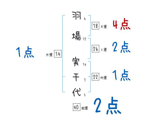 外運![]() | 羽場実千代さんの外運は14画の1つ星!人に対して優しいがストレスを溜め込みがち。人間関係のトラブルを避けるよう気をつけましょう。 生活面を象徴する運勢です。外部から受ける影響力を表し、結婚運、家庭運や職場、環境への順応性を表します。 |