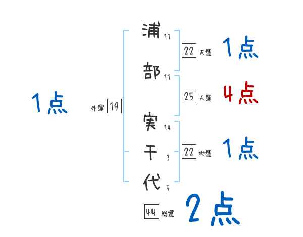 外運![]() | 浦部実千代さんの外運は19画の1つ星!優れた才能を持ちますが、協調性が足りないことも。周りの人と協力する事を意識しましょう。 生活面を象徴する運勢です。外部から受ける影響力を表し、結婚運、家庭運や職場、環境への順応性を表します。 |