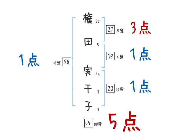 総運![]() | 権田実千子さんの総運は47画の5つ星!実力が開花し発展する円満な人生。財に恵まれる。 あなたの人生を表す1番重要な運勢です。生涯を通じて影響する総合運となり、主に50歳以降の晩年期に影響を及ぼします。 |