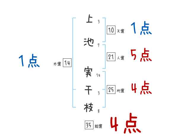 上池実千枝さんの画数の鑑定結果