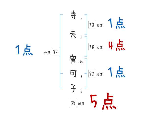 外運![]() | 寺元実可子さんの外運は14画の1つ星!人に対して優しいがストレスを溜め込みがち。人間関係のトラブルを避けるよう気をつけましょう。 生活面を象徴する運勢です。外部から受ける影響力を表し、結婚運、家庭運や職場、環境への順応性を表します。 |