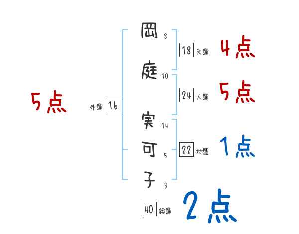 岡庭実可子さんの画数の鑑定結果