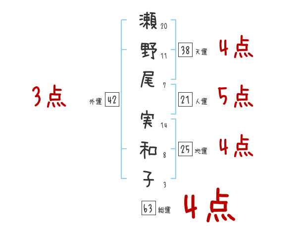 瀬野尾実和子さんの画数の鑑定結果