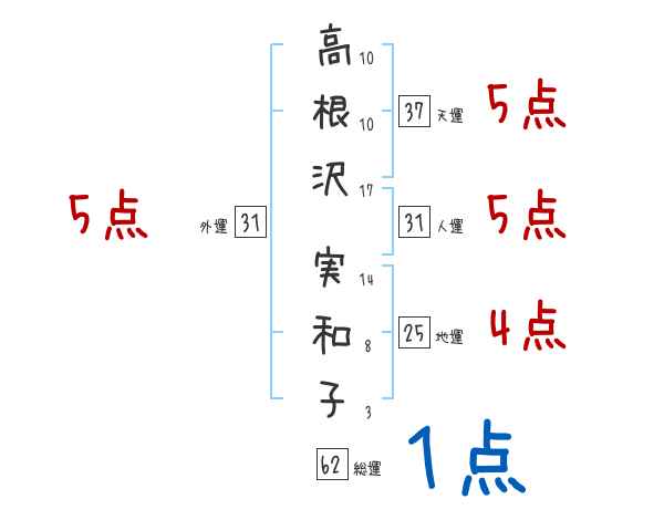 高根沢実和子さんの画数の鑑定結果