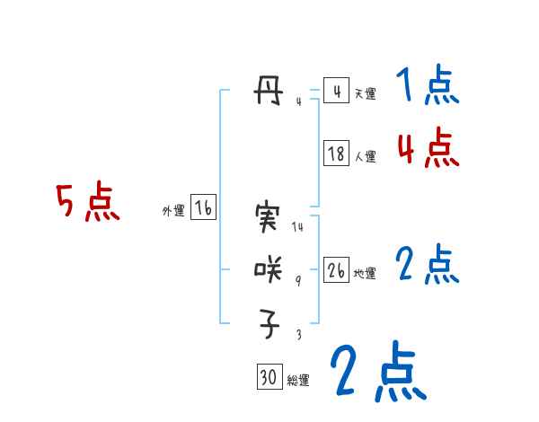 天運![]() | 丹実咲子さんの天運は4画の1つ星!感情が不安定で苦労するかも。周囲との協調を心掛けましょう。 家系が持つ宿命的な運勢を表します。祖先から受け継いだ苗字ですので自分の力が及びません。家柄を象徴します。 |