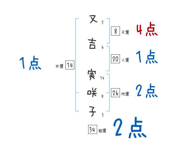 外運![]() | 又吉実咲子さんの外運は14画の1つ星!人に対して優しいがストレスを溜め込みがち。人間関係のトラブルを避けるよう気をつけましょう。 生活面を象徴する運勢です。外部から受ける影響力を表し、結婚運、家庭運や職場、環境への順応性を表します。 |