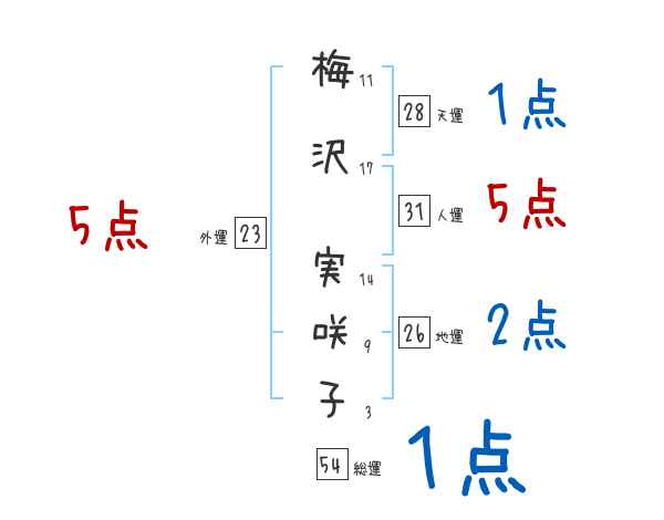 梅沢実咲子さんの画数の鑑定結果