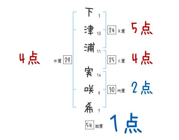 下津浦実咲希さんの画数の鑑定結果