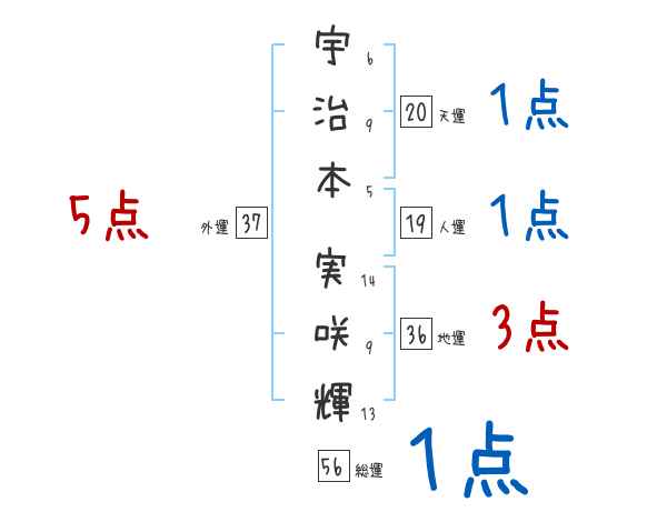 宇治本実咲輝さんの画数の鑑定結果
