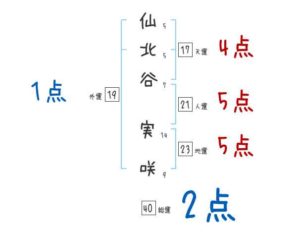 総運![]() | 仙北谷実咲さんの総運は40画の2つ星!自信過剰で物事に固執するためトラブルに注意。 あなたの人生を表す1番重要な運勢です。生涯を通じて影響する総合運となり、主に50歳以降の晩年期に影響を及ぼします。 |