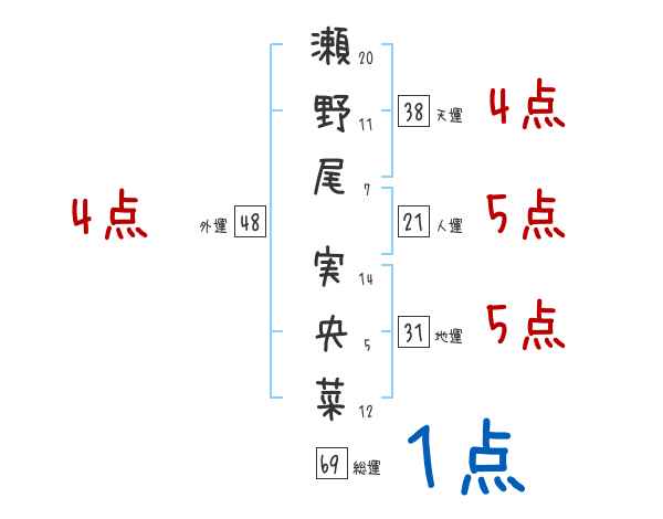 瀬野尾実央菜さんの画数の鑑定結果