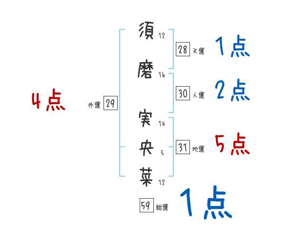 須磨実央菜さんの画数の鑑定結果