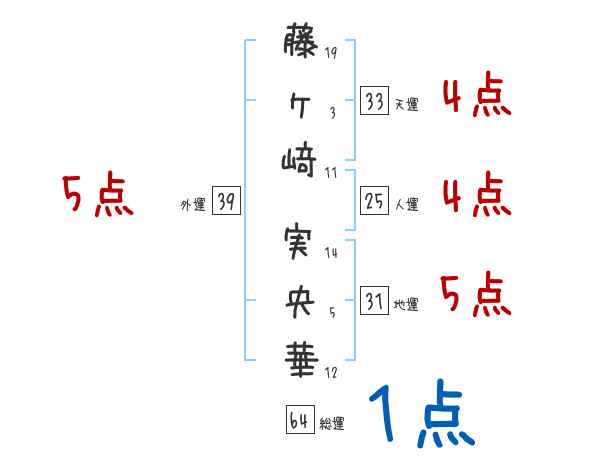 藤ヶ﨑実央華さんの画数の鑑定結果