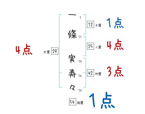 外運![]() | 一條実寿々さんの外運は29画の4つ星!完全主義で才能がある。厳格な心の持ち主。 生活面を象徴する運勢です。外部から受ける影響力を表し、結婚運、家庭運や職場、環境への順応性を表します。 |