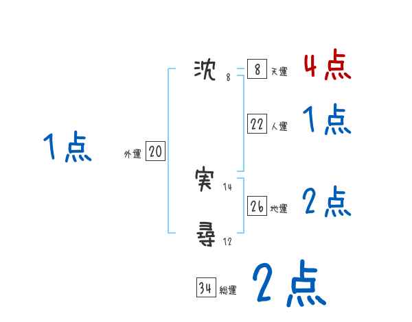 沈実尋さんの画数の鑑定結果
