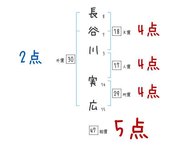 長谷川実広さんの画数の鑑定結果