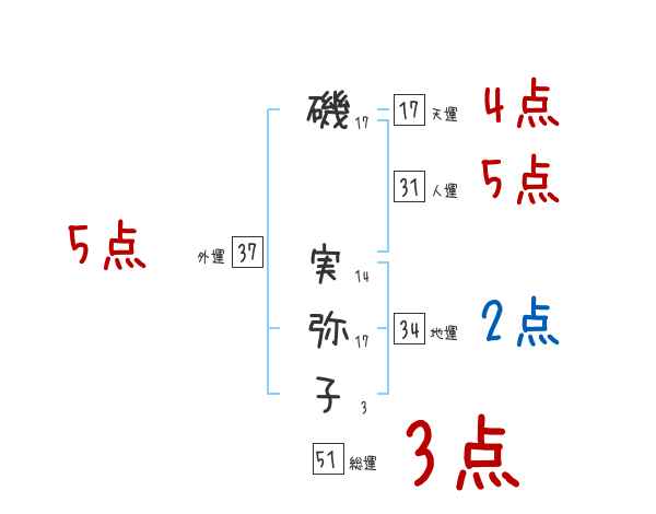 外運![]() | 磯実弥子さんの外運は37画の5つ星!努力家で順応性に優れる。現実的な考え方ができ忠実に物事をこなす。 生活面を象徴する運勢です。外部から受ける影響力を表し、結婚運、家庭運や職場、環境への順応性を表します。 |