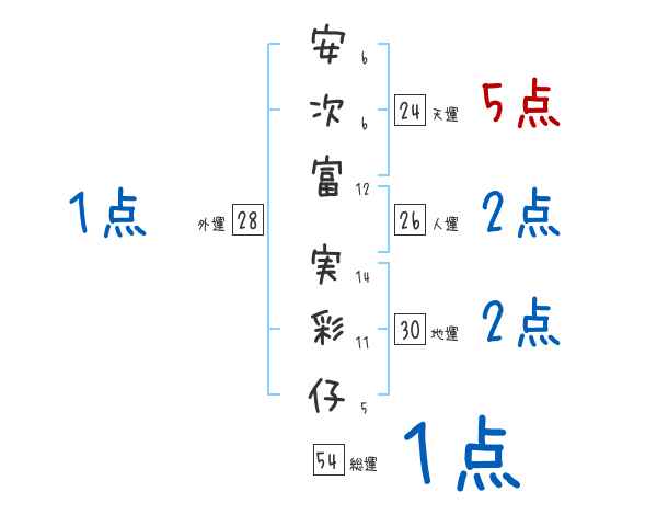 安次富実彩仔さんの画数の鑑定結果
