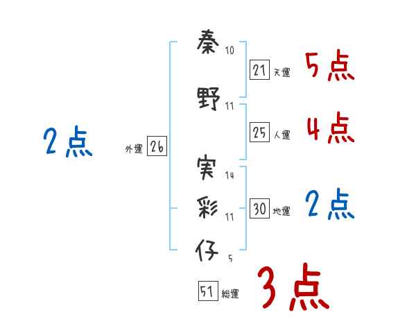 秦野実彩仔さんの画数の鑑定結果