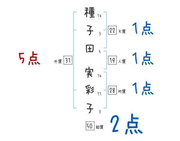 種子田実彩子さんの画数の鑑定結果