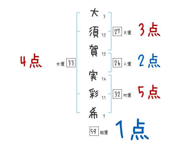 地運![]() | 大須賀実彩希さんの地運は32画の5つ星!柔軟性があり成功する。チャンスが多く金運が良い。 個性を表す基礎的な運勢です。性格形成や対人関係、行動力など家庭環境に影響されます。主に誕生してから20歳くらいまでの若年期の運勢を表します。 |