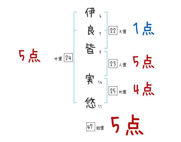 伊良皆実悠さんの画数の鑑定結果