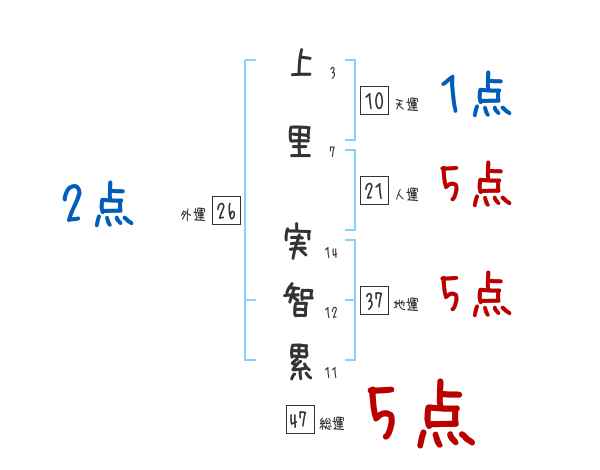 人運![]() | 上里実智累さんの人運は21画の5つ星!統率力がある。独立し成功する。名誉を手に入れる。 性格や才能などを表す2番目に重要な運勢です。人間関係や協調性、社会的な成功に影響します。主に20歳から50歳ぐらいまでの中年期の運勢を表します。 |