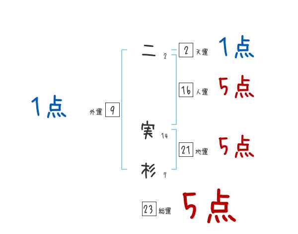 二実杉さんの画数の鑑定結果