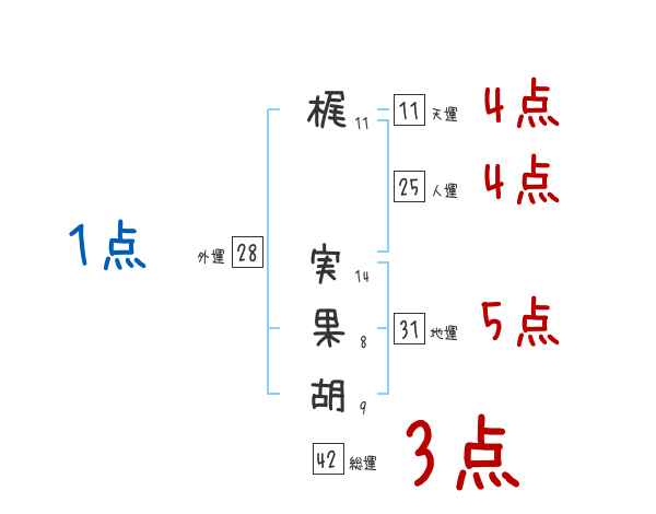 外運![]() | 梶実果胡さんの外運は28画の1つ星!家庭環境に注意。スポーツで活躍できる能力があるかも。 生活面を象徴する運勢です。外部から受ける影響力を表し、結婚運、家庭運や職場、環境への順応性を表します。 |
