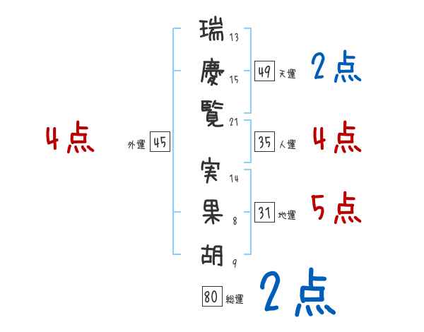 瑞慶覧実果胡さんの総運は80画の2つ星