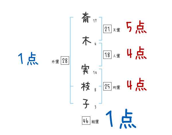 斎木実枝子さんの画数の鑑定結果
