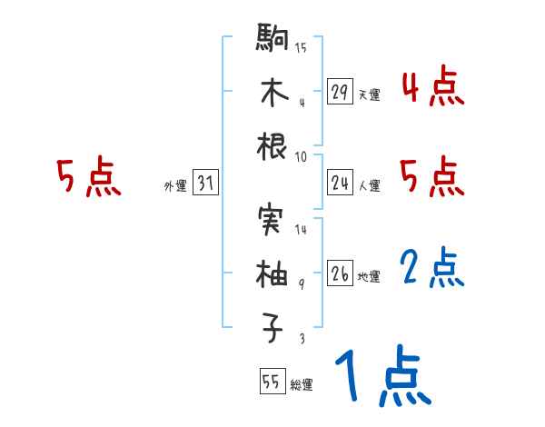 駒木根実柚子さんの画数の鑑定結果
