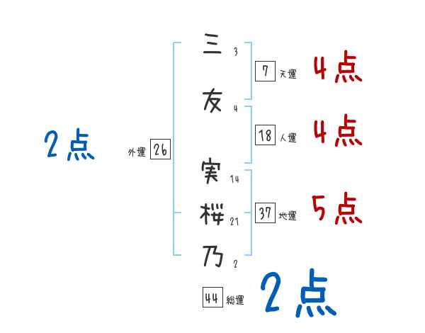 外運![]() | 三友実桜乃さんの外運は26画の2つ星!波瀾万丈かも。信頼できる人を大事にしましょう。 生活面を象徴する運勢です。外部から受ける影響力を表し、結婚運、家庭運や職場、環境への順応性を表します。 |
