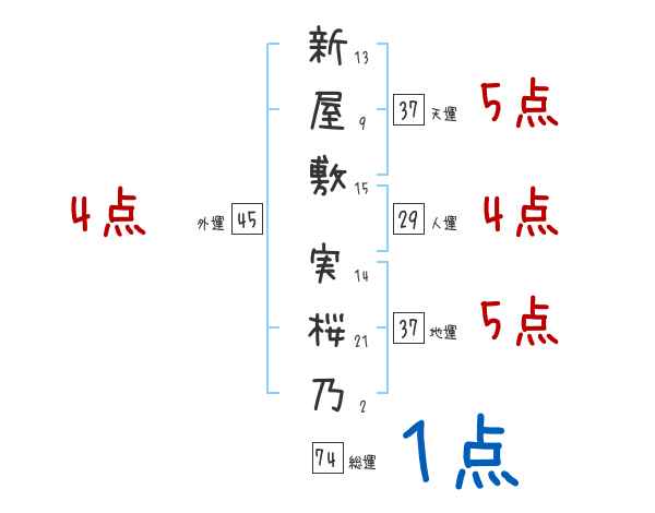 新屋敷実桜乃さんの画数の鑑定結果
