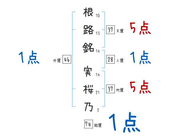 根路銘実桜乃さんの画数の鑑定結果